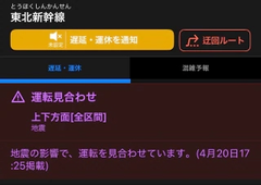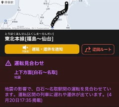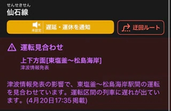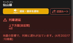 皆さまご無事でしょうか。 まだ余震もあるかもしれませんので、 どうかお気をつけてお過ごしください。 ![]() 久しぶりの地震(震度5) 驚きましたね…。 地元のお兄様方はお家や会社 など被害はありませんでしたか? 出張中のお兄様は 出先での緊急事態に不安になられて いらっしゃることかと思います。 こういう時こそ無理をせず まずはご自身の安全を最優先に。 現在 ![]() ![]() ![]() 東北新幹線・東北本線・仙石線 運転見合わせ ![]() 仙山線 遅延 となっている様子。 仙台駅をはじめとした駅で 混乱なども起きている様子。 バス🚌やタクシー🚕など 迂回や帰宅路変更 なども検討の上ご移動ご安全に‼️ 運転再開まで時間があいてしまったら 立町辺りで安全に再開を待つのもいいかも 帰宅ラッシュの時間帯 お兄様方が無事帰宅できるよう 願っております。 ![]() 緊急事態とは分かりつつ 避難が非難になってて少し 不安な気持ちが和らぎました。 まだまだ油断できませんが 少しでも笑顔になったり 助けになれば幸いです。 じゅり |