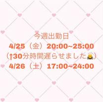 出勤予定日♀4/25・4/26 |
