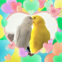 写真のインコさんは私が飼っている子達 |