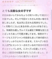 口コミ投稿ありがとうございます💖 先月も、エリカと遊んでくれて本当に ありがとうございます! ![]() 3度目まして⁽⁽٩(๑˃̶͈̀ ᗨ ˂̶͈́)۶⁾⁾ ヌルヌル楽しんでいただけて 良かったです😚🫧 1ヶ月待ってくれたんですね…♡ 嬉しすぎます(⁎˃ᴗ˂⁎)♡⤴︎⤴︎ 今日投票最終日ですが、ミスヘブン応援 よろしくお願いします🙇♀️ また、お会いできる日を楽しみにしています♪ ありがとう ![]() エリカ |