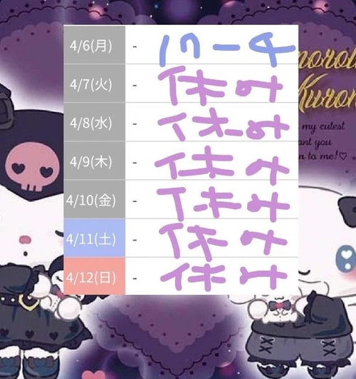 週のシフトだよね〜!!!