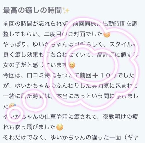 ☆業界未経験が開花ご奉仕巨乳美女☆ 『ゆいか』 彼女のオススメポイント ・素人感があり自然な振る舞い ・巨乳パイパン ・清楚で清潔感のある女の子 ・ご奉仕好き頑張り屋 ・おしとやかな美人 入店当初業界未経験だった『ゆいかちゃん』 しばらくして、口コミ、お客様、女の子からお話しを聞いてみると。。 とんでもない事実が発覚したのでこれは、お知らせしないと!! 見た目は、おしとやかな綺麗系の女の子。 21歳と若い女性ではありますが、見た目から出る色気、あどけなく残る可愛らしさここの二つを兼ね備えてるような女性です! 目がチャームポイントで笑った時が可愛くて堪りません! 性格は、男性に対して緊張してしまうとおっしゃっていました! でも、今からエッチな事する時の雰囲気はどちらかと言えば恥ずかしがってるくらいがドキドキしますよね? 彼女は素人感に溢れてる女性なのでお話ししてシャワーを浴びて徐々にに距離を縮めていくタイプでまるでデリヘルに遊びに行くという感覚よりは2人だけのプライベートタイム!こう言った印象を持てる業界ではレアな女の子なんです! 話始めると、良く笑ってくれる子でくっついてお話ししてくれる素敵で可愛い女の子なんです! スタイルも男性が大好きな細身ムチムチ系 たまらないですよね! ガリガリでもなく、太ってもなく、出るところ出てる興奮度の高い女性! 胸はEカップの巨乳ちゃん! 服の上からはあまりわからない分脱いだ時の衝撃とそのギャップにやられてしまう。。。 そして、流線的なボディラインは抱き心地抜群! お尻もプリンと可愛いお尻でモチモチとしていて触り心地抜群! 肌も綺麗で若々しいピチピチとした肌! 日常では味わえない可愛い子とのひと時が送れること間違いなし! プレイの方も頑張り屋さん! お客様が求めてる事はできる限り答えたい 勿論ルールの範囲内で! なんで良い子なんでしょう泣泣 ご奉仕系で相手に気持ちよくなってもらいたい、その一心で一生懸命してくれる子です! 勿論責めてても楽しく、反応と少し恥ずかしがりながら出す喘ぎ声は男の心をくすぐる最高の瞬間! 男性にリードされながら自分も頑張る! まるで、恋人のような時間を過ごし時間があっという間に過ぎていくようです。。 出勤時間が短い女の子なので早い者勝ちです!! 是非一度、お会いしてみてください!