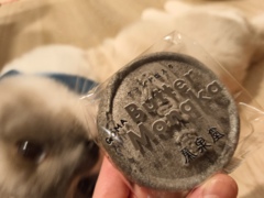 カズノリイケダの御実家 丸森の和菓子屋さんのバター最中 なんで黒いんだろう!とおもったら ごま♡ レアです 初めて見ました もったいないくてまだ食べてませんが 味をイメージしました♡ たのしみー ヒナタ