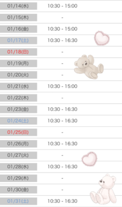 1月のシフトだしきりました♡