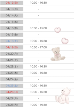 本日10時半〜16時半上がりで出勤致します・:*+.\(( °ω° ))/.:+