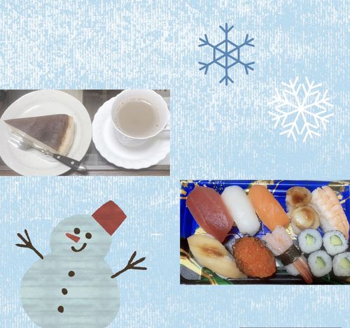 お寿司とみかんとカフェオレとチーズケーキごちそうさま(*^^*)