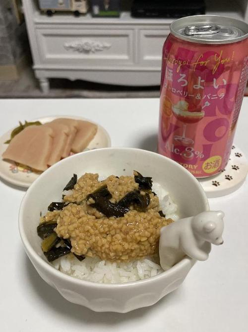 前に漬物をお土産に持ってきてくれるって言ってたの覚えてくれててありがとう〜!緑の部分を細かく切って納豆と混ぜて食べると美味しいって言ってたから さっそくやってみたよ🍴✨