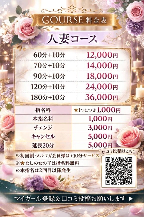 人妻さんの料金表がサイトで確認しにくくなってるので改めてアップさせて頂きました