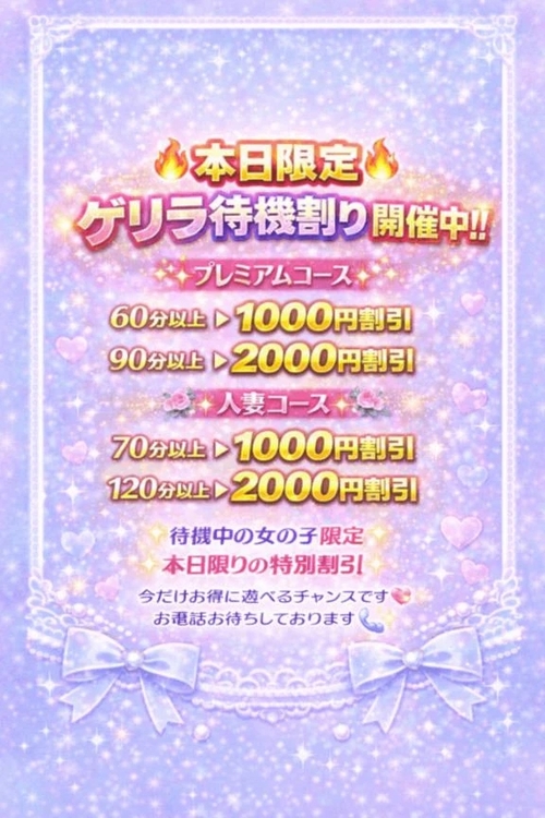 メッセージ:※人妻コース 『くらん すずな』さん 小柄で華奢なスレンダー人妻さん エッチに貪欲 淫乱で積極的!! 清楚で小柄なかわいい系の人妻さん 見た目お淑やかな人妻さんがプレイに入れば豹変 あんな事やこんな事バイブや電マなど白目をむいて大絶叫!! テクニック&愛嬌とも抜群!! 沼りそうです!! しかもAFも大好きなど淫乱ちゃん 綺麗で可愛い人妻さんとスケベな時間を過ごしたい男性には超おすすめです。 もしかして…と思われた方… ご予約お待ちしております。