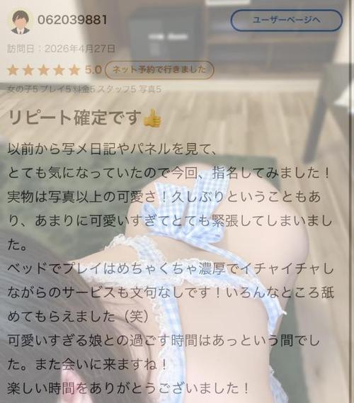 とても愛くるしい性格で人懐っこい愛嬌満点のアイドル、ウミちゃんです! 可愛らしいお顔でいつもニコニコ笑顔、小柄で全身スベスベ、柔らかく抱き心地抜群のエロボディ? 可愛らしさとエロさを兼ね備えた究極の美少女なんです! ウミちゃんのおすすめポイント ・とても人懐っこく、誰とでもすぐになれちゃう愛嬌の持ち主! ・可愛いロリカワなお顔で、にこにこ笑顔がたえない明るい性格! ・小柄な身体に、揉み応えのあるおっぱい、抱き心地抜群! ・感度抜群で反応もエロ可愛い? 可愛いお顔に幼さの残る無邪気な性格がマッチした、アイドル感溢れるロリカワ美少女です! 見た目通り、いや見た目以上の人懐っこさと愛嬌の良さがあり、一度あったらその距離感、可愛さにもう一度会いたくなること間違いなし! スタイルもそのルックスにマッチした小柄で色白、Dカップのおっぱいは小柄だからかより大きく見え、しかもめちゃくちゃ柔らかいんです! 肌もスベスベでスレンダーながら全身柔らかく、いつまでも抱きしめていたくなるような身体、たまりませんね! しかも、天然でイチャイチャしてくれるような小悪魔的一面もあり、そのうえで感度も抜群なんです! お部屋に入った瞬間、そこは彼女のオンステージ! まず愛くるしいルックスに心奪われてしまうことでしょう! そしてその天然のイチャイチャ感、シャワーを浴びる頃にはもうお客様の興奮は最高潮! シャワーでイチャイチャくっつき、ベッドの上では超敏感なウミちゃんをご堪能ください! 丁寧に責めてあげると、どんどんえっちなことを求めてくるその姿は筆舌に尽くしがたいほど興奮を高めてくれます! 電マを優しくあててあげるとすぐに絶頂に達してしまうほど敏感なウミちゃんです! 優しく丁寧にしっかり責めてあげちゃってください! えっちなことに意欲的な女の子ですので、当然責めの方も得意です! 無邪気にお客様のあそこをしゃぶってくれるその姿、そして純粋に上手で気持ち良いフェラチオでウミちゃんのお口のなかで最高の絶頂をお迎えください! 小柄でアイドルのようなロリカワ美少女、性格も明るく人懐っこさがたまらない! ルックス、お話からプレイまで全てご満足いただけることでしょう! えっちで可愛い美少女とお楽しみになりたいお客様は、是非一度はウミちゃんとお遊びすることをお勧めいたします! たくさんのお問い合わせお待ちしております!