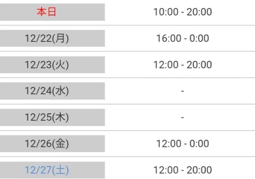 明日22日(月)は、16時から夜0時までの出勤に変更いたします