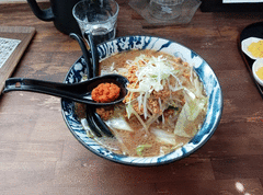 上山市金瓶水上にある『拉麺さとう』さんの『味噌もやし 肉味噌トッピング』でしたぁ〜🍜