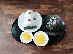 そしておにぎりはミヅキ梅干1個、家族梅干1個ごま1個🍙