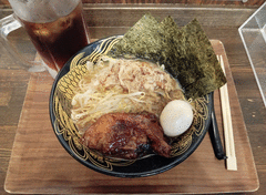 そしたらまたまたサービスで黒烏龍茶、味玉1個、海苔3枚付いてきた🎶