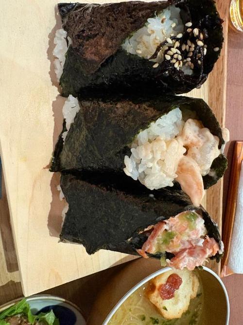 やっほい(`・ω・´)キリッ✨ しおりちゃんだよん\( ˙꒳˙ \三/ ˙꒳˙)/✨ おにぎり!!!食べたよ!!! ヾノ。ÒдÓ)ノシ バンバン!!!✨✨ 3個は頼みすぎた……お腹ぱんぱん苦しい😭 めちゃくちゃ美味しくて幸せ(*´﹃`*)💕💕