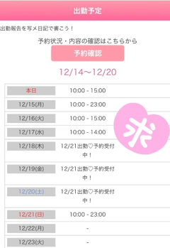 来週の出勤予定が確定したので