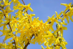 空に向かって咲くレンギョウ。