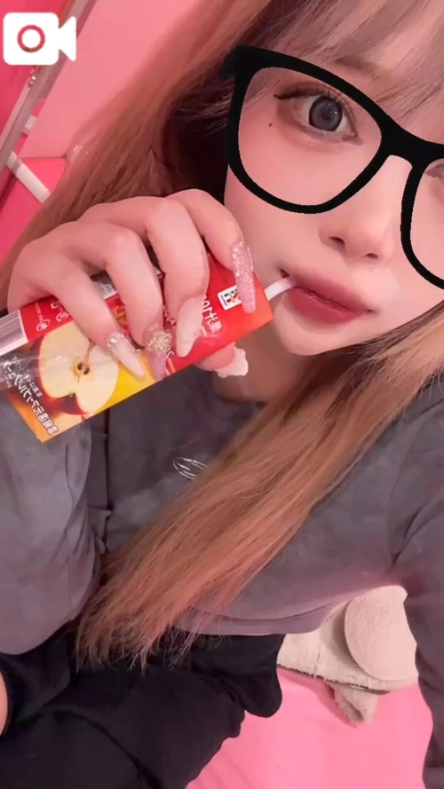 大好きなりんごジュース飲んで
