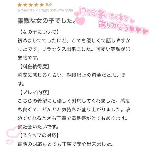急遽面接に来てくれたヒマリちゃん オススメポイントにもある様に まるで恋人の様なイチャイチャプレイが大好きみたいで 人肌恋しく入店を決めてくれたそうです♪ そんなヒマリちゃんですが 大のオナニー好きだそうで、三食のご飯より オ〇二ーが好きとの事で、相棒は電マとの事? 敏感体質でオナニー後はパンツが大変になるそうです♪ また体のパーツの自身のある部分を訪ねる 即答でおっぱいとお尻と言うだけあって ハリがあって形の整ったおっぱい? お尻も凄く形が綺麗に整っておりまさに圧巻!! おっぱい好きやお尻フェチのお客様以外も ガッツポーズ間違いナシの一級品です♪ おっぱい好きのお客様! お尻フェチのお客様!お急ぎください(笑) ヒマリちゃんの性感帯は乳首みたいで 乳首を優しく責められると ヒマリちゃんのエロスイッチが入ってしまい 声が思わず出てしまってア〇コも大変な事になるとの事? 『自宅等で静かにご利用したいお客様はご注意下さい(笑)』 そんなヒマリちゃんにエロい目でフェラされたら ご満足する事間違いないです! 責められ好きなお客様! 責め好きなお客様! おっぱい好きのお客様! お尻フェチのお客様にかなりオススメのヒマリちゃん? 是非一度ご予約頂けたら幸いです♪ 予約殺到の恐れがありますので 出勤チャックのお忘れがない様よろしくお願い致します♪