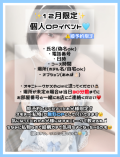 メッセージ:素人感満載、王道のロリカワG巨乳! ときめきと幸せと癒しを運んでくれる、圧倒的な存在感を醸し出すアイドル! 丁寧なのに甘え上手という最高のギャップを手にした最高級の美少女、ネオちゃんです! 可愛らしい顔立ちに、抱き心地もよく揉み応えもあるGカップ美巨乳は必見です! お会いした瞬間、この出会いに感謝することはもはや必然と言えるでしょう! ネオちゃんのおすすめポイント ・正統派ロリ巨乳の美少女! ・いつまでも揉んでいたくなるようなGカップおっぱい ・気遣い、丁寧さ、愛嬌どれをとっても◎ ・超敏感大洪水、潮吹きしちゃうことも♡ 圧倒的大正解! 全身に衝撃が走る程、愛くるしく可愛らしい端正なお顔立ちの美少女! パッチリした瞳に眩しい笑顔、焦がれるほどにくるおしい純白の素肌と、吸い寄せられてしまうほどの魅力を醸し出す美巨乳♡ 可愛くて巨乳で甘え上手な美少女に癒されたいという、世の男性の願望がここにあります! スタイルもさることながら、どんな時でも思いやりを持って応えてくれそうな愛嬌の良さが、お客様の心を虜にすると確信しています! 柔らかなハリと弾力、溢れる潤いとツヤ、美しさが幾重にも重なる魅力満点な美肌とボディは、あまりにも官能的でその存在から目が離せなくなってしまいます! それだけにとどまらず、谷間を覗かせるボリューム満点のバストは、触り心地抜群のGカップ美巨乳♡ 絵に描いたようなこの美しさ、可愛さはまさに「アイドル」なんです! また彼女の明るく気さくな性格は、誰からも好かれてしまう生まれ持った天性の魅力でもあります! 清楚、可愛らしさ、女性らしさを兼ね備えており、その素直さと礼儀の良さに反比例する超敏感ドスケベボディとのギャップに好きになってしまう男性は数知れず、、、 きっと知れば知るほどお客様の心を虜にして決して離さないことでしょう! すぐに打ち解けてシャワーに行った瞬間、ネオちゃんからの極上のサービスが待っています! イチャイチャ全開のシャワータイムは、たまらない密着感であなたを幸福の海に溺れされることでしょう! その時点ではちきれんばかりの興奮は必至ですが、さらにベッドの上がすごいんです! 洗練された責めのプレイができる一方、アイドルのような見た目からは想像できないほど乱れる淫乱っぷりなんです♡ とにかく敏感な彼女、キスをするだけでもうあそこは濡れ濡れなんです!もはや濡れ濡れなんてレベルじゃ無く大洪水! こんなに責めがいのある子はめったにいないと断言できます! 電マが大好きみたいで、フェラさせながら電マをあててると、時には潮吹きしてしまう彼女、その絶頂してる姿を拝んだ時、すでにあなたは射精してしまっていることでしょう! そんな敏感で淫乱でしかもGカップの巨乳、楽しみ方が多すぎて一度で彼女を堪能し切るのはもはや不可能です! またすぐ会いたくなるほど、中毒性抜群!! お客様の風俗人生を変えてしまうかもしれない、、、 それだけの価値がある女の子であることは間違いありません! 満足しないはずがありません!どハマり注意です!! 今後、予約困難になること必至の女の子です。 是非ともお早めのご予約・お問い合わせをお願いいたします!