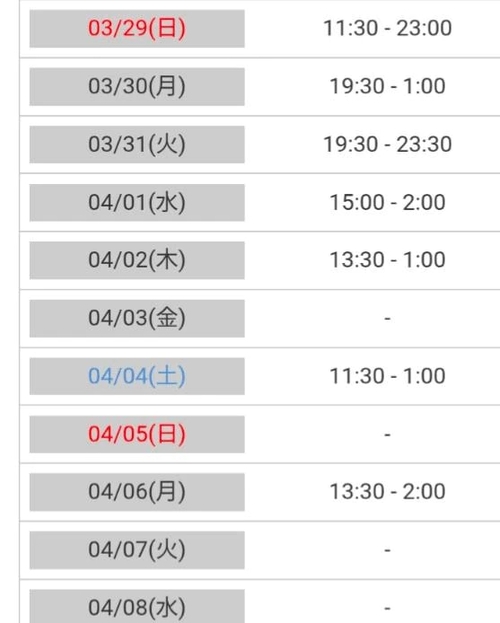 日程は1週間ずつ予定で更新するので、確認してね