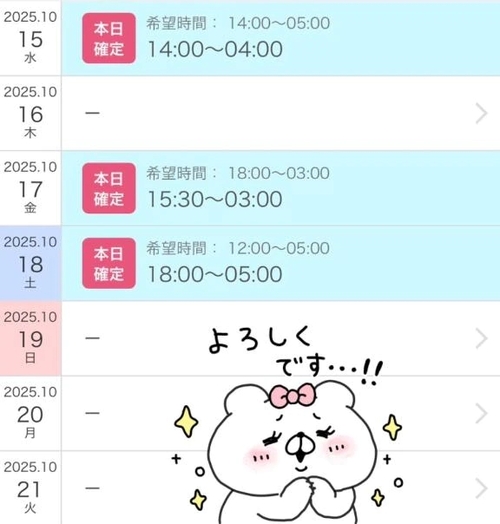 来週のシフトは