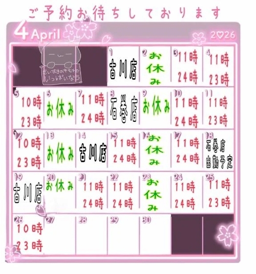 お待たせしました! 26日までの出勤予定が確定です!