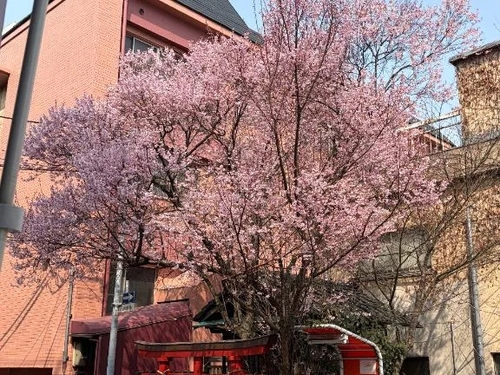 目の前の神社の桜が満開だった♡