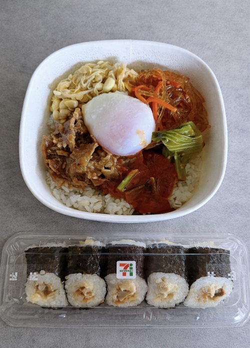 唐揚げマヨ海苔巻きをおかずにビビンバを食べる🥢
