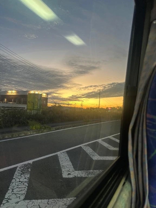 お店向かう途中の夕日が