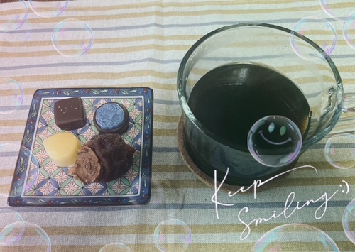 時々お家でティータイムしています。これほお花のチョコレートとコーヒーです。とろける程美味しかった〜