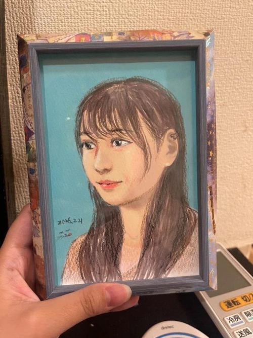 のあです🍑 21日に来てくれたお兄さんがのあの顔を描いてくれてとても上手すぎて嬉しかった絵です🖼 今から顔書いていい?って初めて言われてほんとにビックリしました🫣 早く描いててすごい出来でとても感動しちゃいました🫶🏻🎀 ありがとうございます︎💕︎