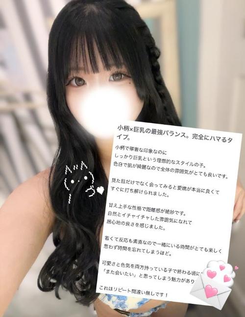 さらりと揺れる黒髪ロングに、透き通るような色白肌。 小柄で華奢な印象ながら、抱き寄せると分かるやわらかな曲線がしっかりと女性らしさを感じさせます。 扉を開けた瞬間から明るい笑顔。 よく笑い、よく話し、場の空気を一瞬で和ませる元気な女の子。 人懐っこく自然に距離を縮め、気づけばすぐ隣で体を寄せている――そんな甘え上手なタイプです。 ぎゅっと抱きついてくる無邪気さ。 柔らかな身体がぴたりと密着し、しなやかなラインが絡むたびに鼓動が早まる。 守ってあげたくなる可愛さに、思わず優しくしたくなるはず。 ……けれど。 ふと笑顔がゆっくりと変わります。 視線が絡み、距離がさらに近づく。 細い腰をすり寄せながら、ほんの少しだけ意地悪な表情。 さっきまで無邪気に甘えていたはずなのに、今度はじわじわと翻弄してくる。 密着したまま離れず、こちらの反応を楽しむような余裕。 柔らかな身体を預けながらも、主導権は彼女が握っている――そんな小悪魔な一面。 元気で明るい笑顔と、後半に見せる艶やかな攻めの表情。 可愛さと色気、その両方を欲張りに楽しめる存在です。 一緒にいると楽しくて、気づけば夢中。 そして最後は、彼女のペースに飲み込まれているかもしれません。 若さ、透明感、そして圧倒的なスタイル。そのすべてを兼ね備えながらも、決して気取らず、自然体で接してくれる彼女は、初めての方にも安心しておすすめできる存在です。 写真や文字では伝えきれない魅力を、ぜひ実際に感じてみてください。店長として、間違いなく「会って納得」の一人だと断言いたします。