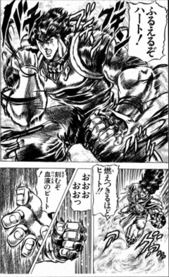 波紋呼吸法による心臓の鼓動と、体中にに走る波紋エネルギーの熱さをテンポよく韻を踏んだこの台詞は、まさに波紋のパワーを十二分に表現したといえる台詞