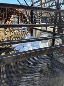 写真は雪を夢中で食べるキリン。