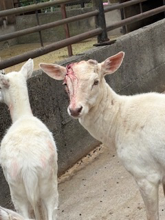 ツノから流血してるヤギがいました。