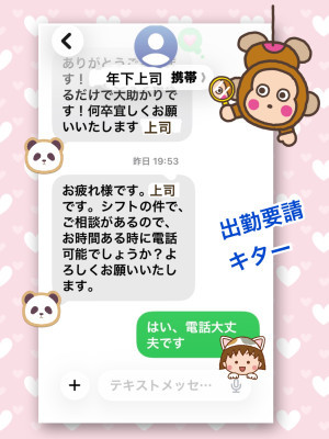 昨日、仕事終わりに 「明日から4連休や〜」と、 すき家でチーズ牛丼をうまうま食べていたら。夜8時前、上司から「シフトの件で相談が…」とショートメールが。