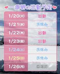 今週の出勤予定です!