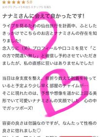 素敵なクチコミありがとうございますっ🩷事前にご予約をいただいたときからトークで何度もお話ししてくださり、ホテルもななみの都合に合わせてくださって本当にありがとうございます🥲✨話し足りなかったので延長してくださったのもとっても嬉しかったです🩷ぜひまた仙台のご用事がある際はななみに会うのも予定にいれてくださったら嬉しいです🥹🧡待ってます!!あ、トークでもたくさんお話しましょ!!あとね、みんなお店のスタッフさんたちのことすごく心地良く予約ができると褒めてくださってななみも嬉しいです!全てお店にも伝えておりますのでみなさま本当にありがとうございます🩷