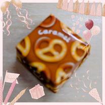 初めて見るタイプだったから何味かなぁと包装を見ていたら「キャラメルプレッツェル」と書いていたよ🟫