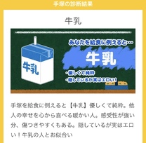 こんにちは(*^^*)日記見てくれてありがとうございます(*^^*)いいねも嬉しいですいつもたくさんのお誘いありがとう(*^^*)今日も先程までリピさんお誘いありがとうございます^-^嬉しいです今日の診断テストは、手塚を給食に例えると…です(*^^*)牛乳でした(*^^*)牛乳好きだったなぁ診断テストおもしろいと、リピさんや新規さんから、ほめてもらえて嬉しいです(*^^*)雨が強くなってきてしまいましたがお時間合えばこれから手塚を呼んでもらえたら嬉しいです(*^^*)女の子休暇が遅れ気味なので、前もって出勤載せれません^-^来週月曜日以降は、突然出勤する形が何度かあるかもしれませんので、出てる時は気がついたら遊びに来てね(*^^*)次の出勤が決められないので、なるべく今日か明日までに会いに来てもらえると手塚喜びます(*^^*)今日明日みなさんと笑顔で会える事を楽しみにしてますね(*^^*)手塚