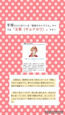こんばんは(*^^*)大好きな薬屋のひとりごとのキャラ診断をしてみたら、玉葉妃に(*^^*)おっとりとか、いつもにこにこしてて、明るいとか、好奇心旺盛だねとか、ゆるふわとは、まわりから言われますが、聡明かどうかは(涙)(笑)したたかって言われてますね(笑)確かに、慎重だったり、警戒心強かったり、用心深い面も実はあります(>_<)過去の経験から学んだんですよ(笑)猫猫にはならなかったけど(*^^*)玉葉妃も大好きだから光栄ですこのアニメ好きすぎてハマりました(*^^*)猫猫は口は悪いしツンデレだけど、本当は優しくていい子(*^^*)うちの娘みたい(笑)映画化とかしてくれないかなぁアニメでね(*^^*)日記見てくれてありがとうございます(*^^*)いいねも感謝しますまた夜寝る前に日記更新しますね(*^^*)手塚