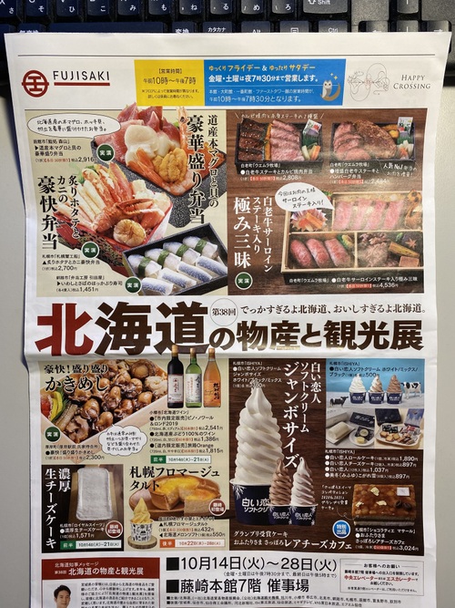 藤崎さん🏬の「北海道物産展」チラシ。。。スタッフがくれたのは「紙」ね笑