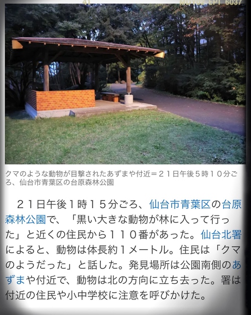 いつも通勤に使ってる公園で、熊が出たらしい