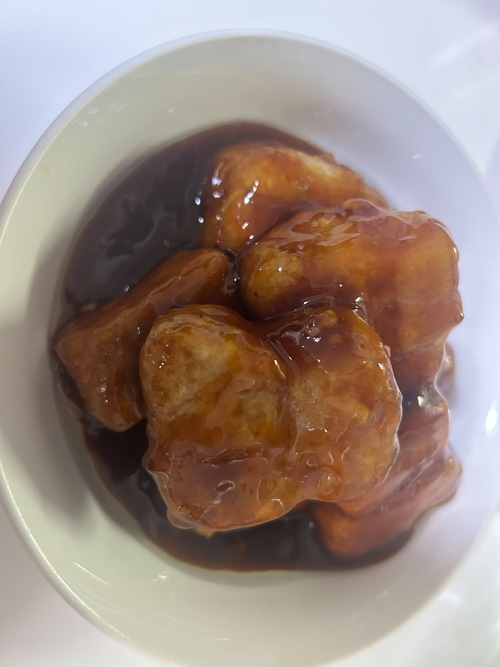 今回のは、肉だけ黒酢酢豚だが