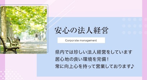 女の子第一主義で、安心、安全、安定を目標に掲げ取り組んでおります。