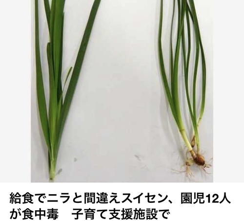 さて、ニュースで給食にスイセンの葉とニラを間違えて食中毒とありました!