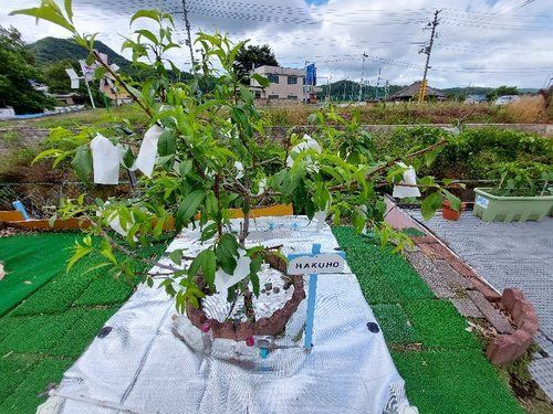 女の子達が手伝ってくれて雨が降る前に袋掛けをしました。