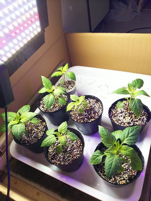 種の時から箱に入れ25度ほどを保つためにアンカを常時ON、昼間はLED光で光合成をさせてます。