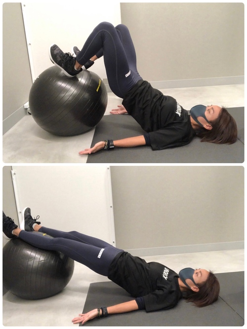 お尻を浮かしたまま、足を伸ばす、縮めるだけの運動なのに